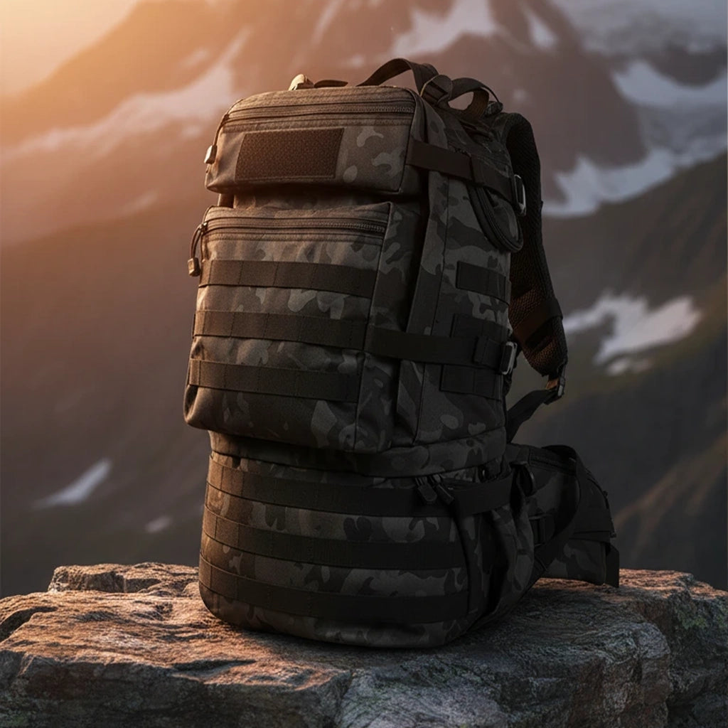 Esta mochila militar de 50 litros es el aliado indispensable para quienes necesitan transportar su equipo de supervivencia, equipo de trekking o kit de emergencia (bolsa de emergencia) con total seguridad. Fabricada en nailon 600D de alta densidad, fue diseñada para soportar condiciones extremas, ofreciendo durabilidad, impermeabilidad y una comodidad ergonómica superior, incluso con carga máxima.